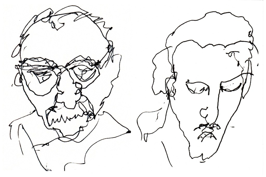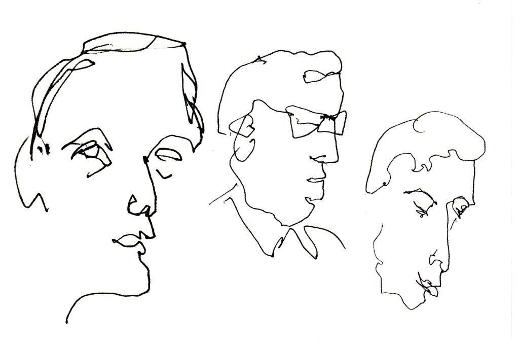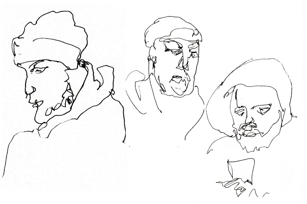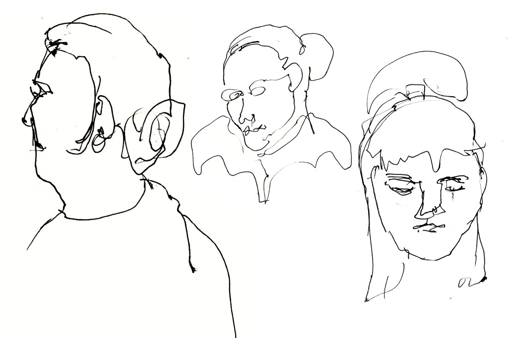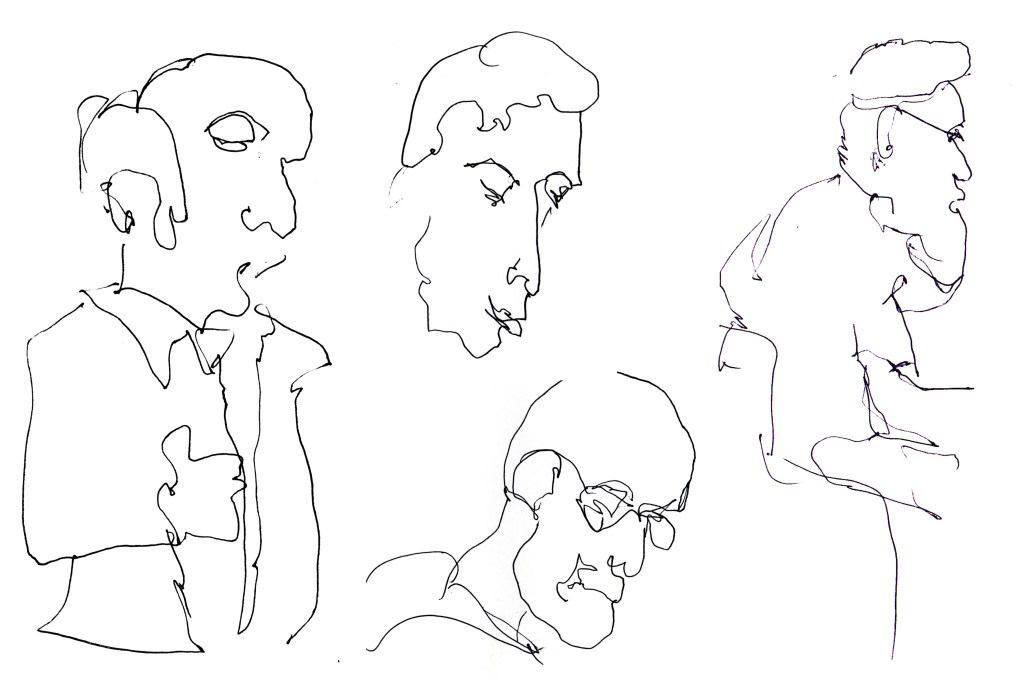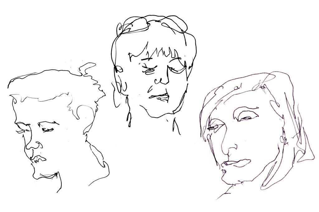 Each week for a year Ruth exchanged postcard art with a friend and artist, Rebecca. My cards contained drawings executed very rapidly on my commute to London.