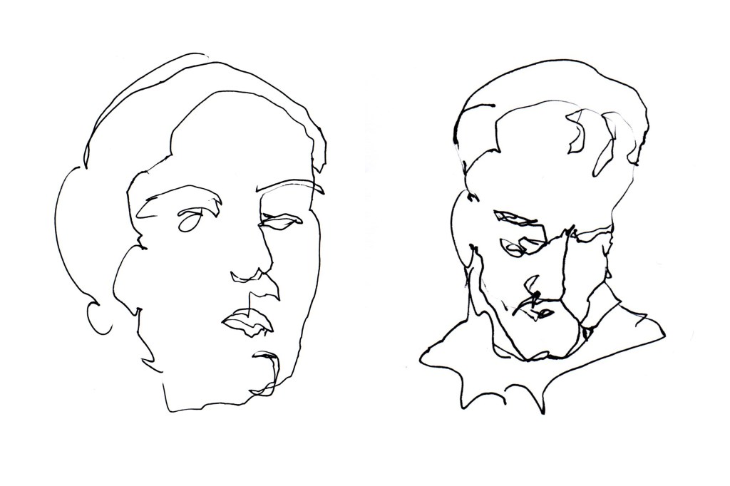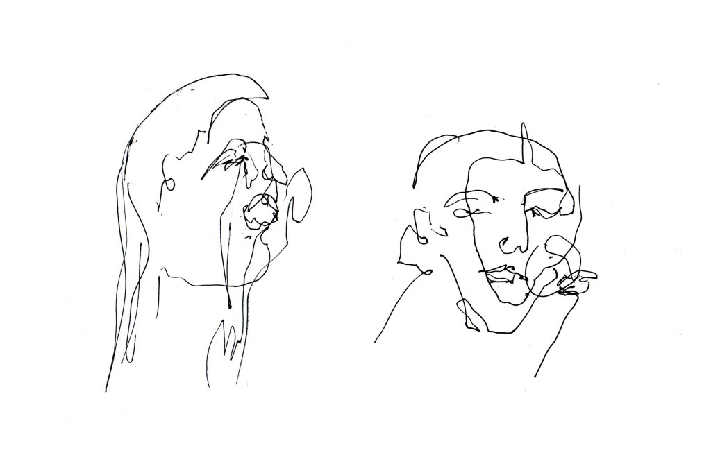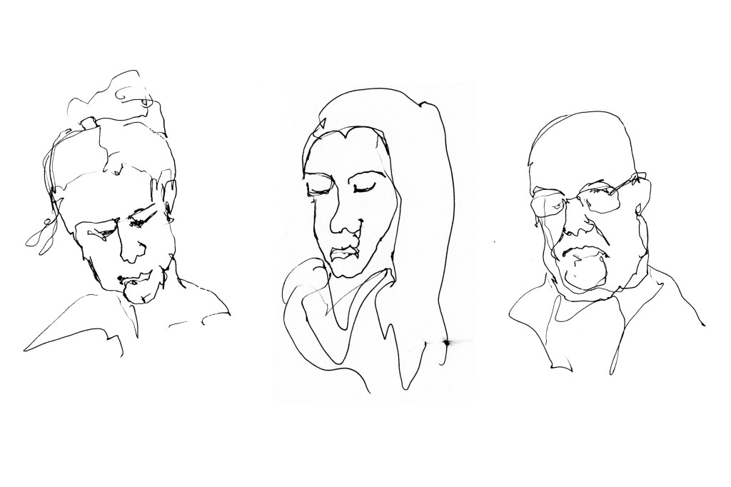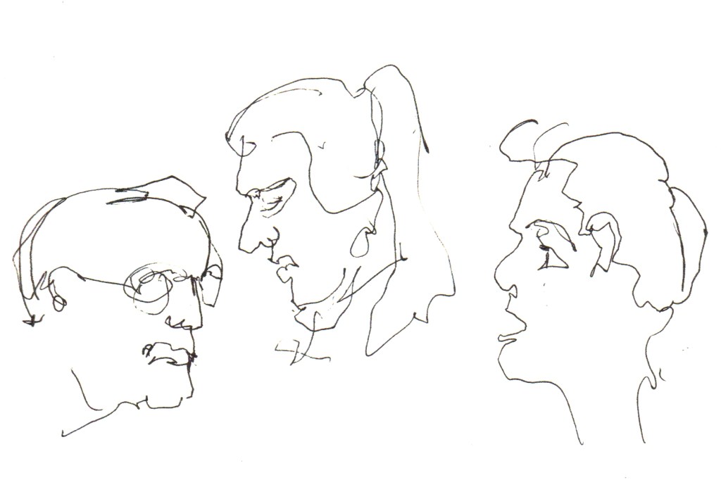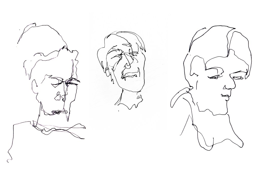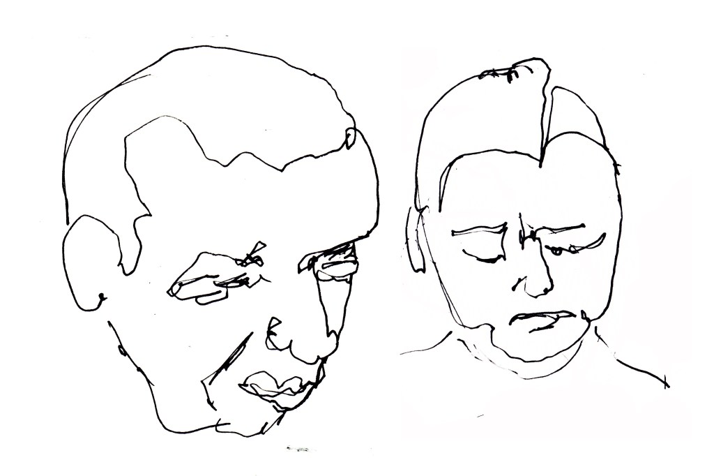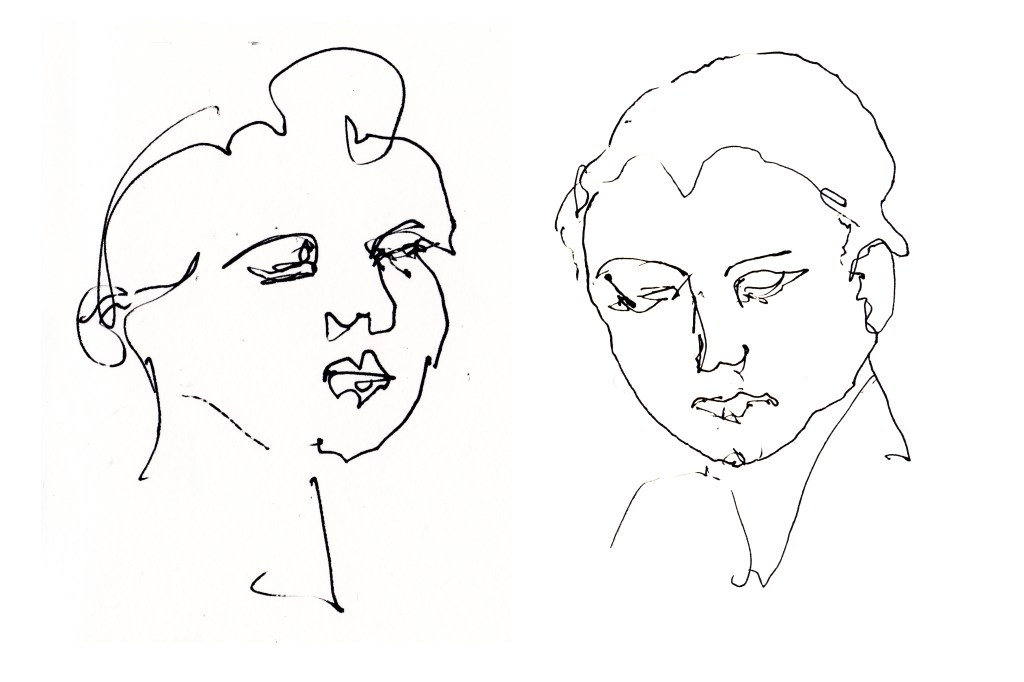 Each week for a year Ruth exchanged postcard art with a friend and artist, Rebecca. My cards contained drawings executed very rapidly on my commute to London.