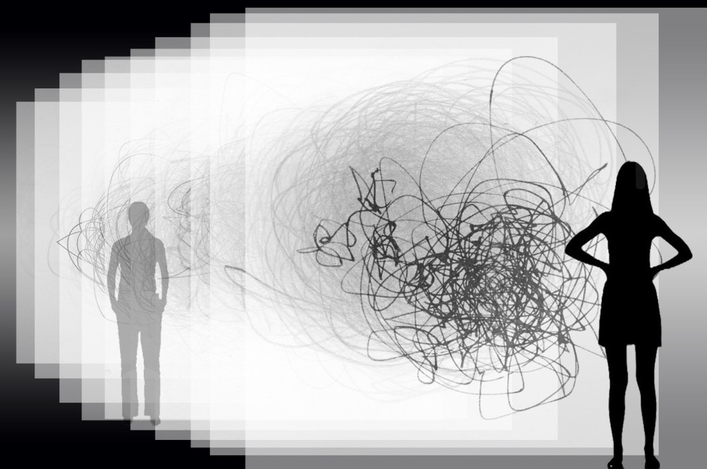 A series of drawings made through the movements of my body on everyday walks. The walks could be considered ‘dead time’ – getting from place to place for the next activity. These mundane moments are the spaces in between the momentous and recorded events – they are the dark matter of our lives.